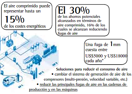 Un sistema eficaz de aire comprimido puede permitir alcanzar ahorros de hasta un 60%. En términos de generación de aire comprimido, los principales fabricantes de compresores ya han decidido adoptar una orientación positiva suministrando máquinas más eficaces que consumen menos electricidad. Pero aún puede alcanzarse un gran progreso en la distribución de aire comprimido hacia los diferentes puntos de uso. Las tuberías tradicionales fabricadas con acero o plástico que aún se utilizan constituyen una solución de mediana calidad al hablar de eficiencia energética, ya que provocan pérdidas de presión e importantes fugas.